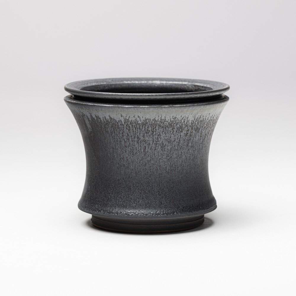 유화적인 감각이 느껴지는 도예 작품으로, 곡선미와 섬세하게 다듬어진 디테일이 하나의 조형물로 조화를 이룹니다. 현대적인 형태와 디자인적 요소에 반해, 마치 세월의 흔적이 담긴 듯한 표면의 텍스처가 깊은 인상을 남깁니다. 전통과 학문적인 맥락에 대한 경외심을 바탕으로, 작가가 추구하는 조형적 표현을 진정성 있게 녹여낸 결과물이라 할 수 있습니다.