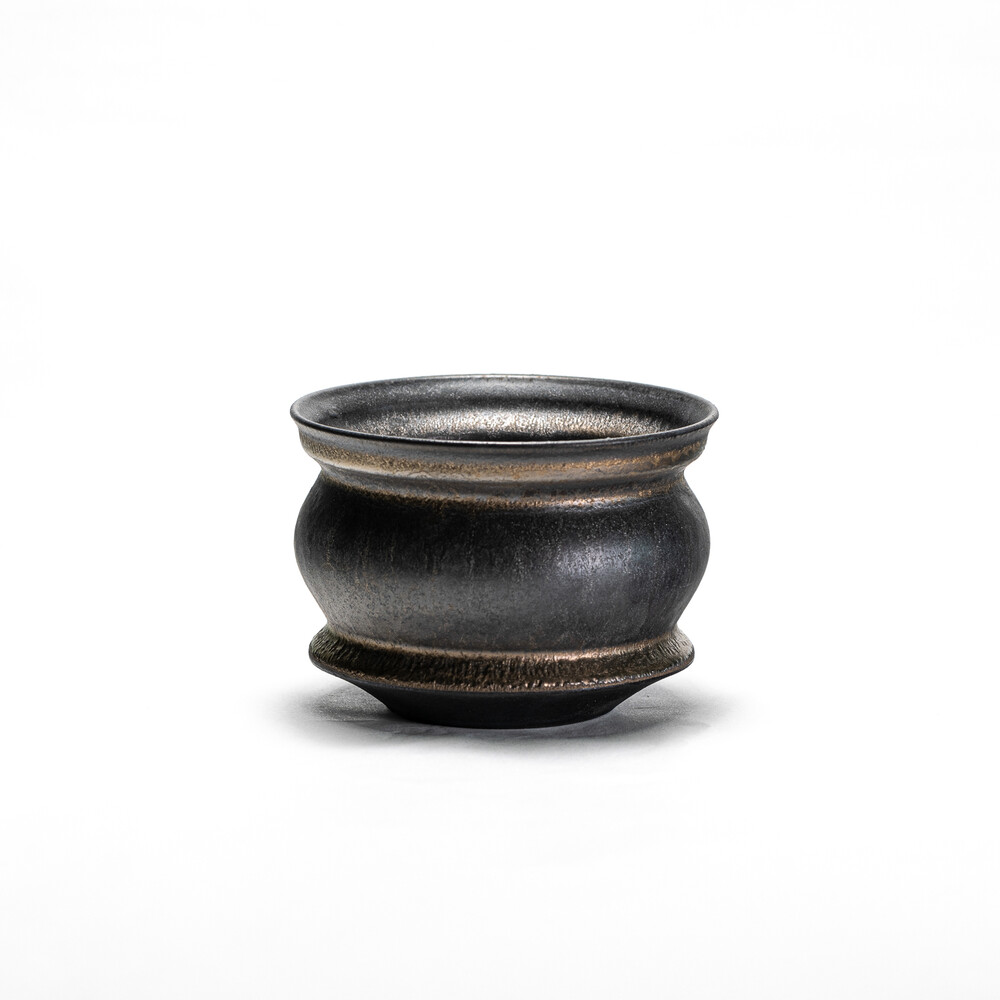 유화적인 감각이 느껴지는 도예 작품으로, 곡선미와 섬세하게 다듬어진 디테일이 하나의 조형물로 조화를 이룹니다. 현대적인 형태와 디자인적 요소에 반해, 마치 세월의 흔적이 담긴 듯한 표면의 텍스처가 깊은 인상을 남깁니다. 전통과 학문적인 맥락에 대한 경외심을 바탕으로, 작가가 추구하는 조형적 표현을 진정성 있게 녹여낸 결과물이라 할 수 있습니다.